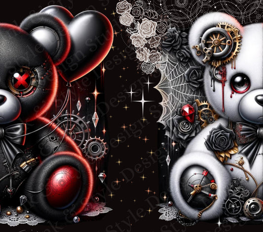 Bear With Me | Steampunk Goth Bear Tumbler Wrap | “Gear Bear” | 20 oz Sublimation PNG Digital Download