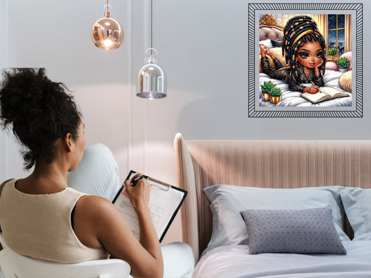African American Chibi Girl Writing Digital Art | Cozy Inspirational Wall Art | PNG Digital Download